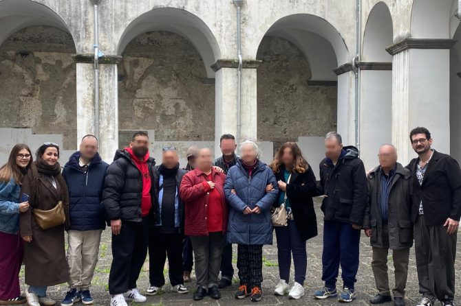 Un gruppo di ospiti accompagnato dai tecnici della riabilitazione psichiatrica e