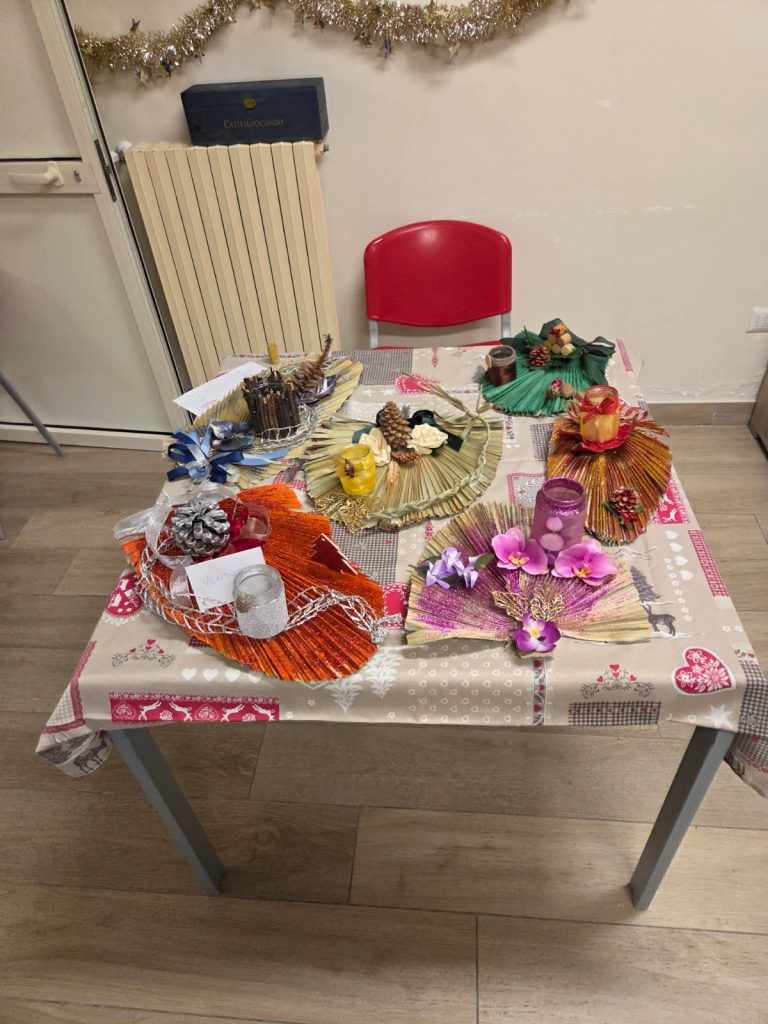 I nostri ospiti e i tecnici della riabilitazione psichiatrica hanno lavorato insieme per creare manufatti unici con materiali riciclati ed elementi provenienti dalla natura. Grande la varietà dei prodotti: decorazioni natalizie, portacandele con pietre e conchiglie, centritavola realizzati su foglie di palma, braccialetti con i charms portafortuna, palle di natale rivestite di lana lavorata all’uncinetto,